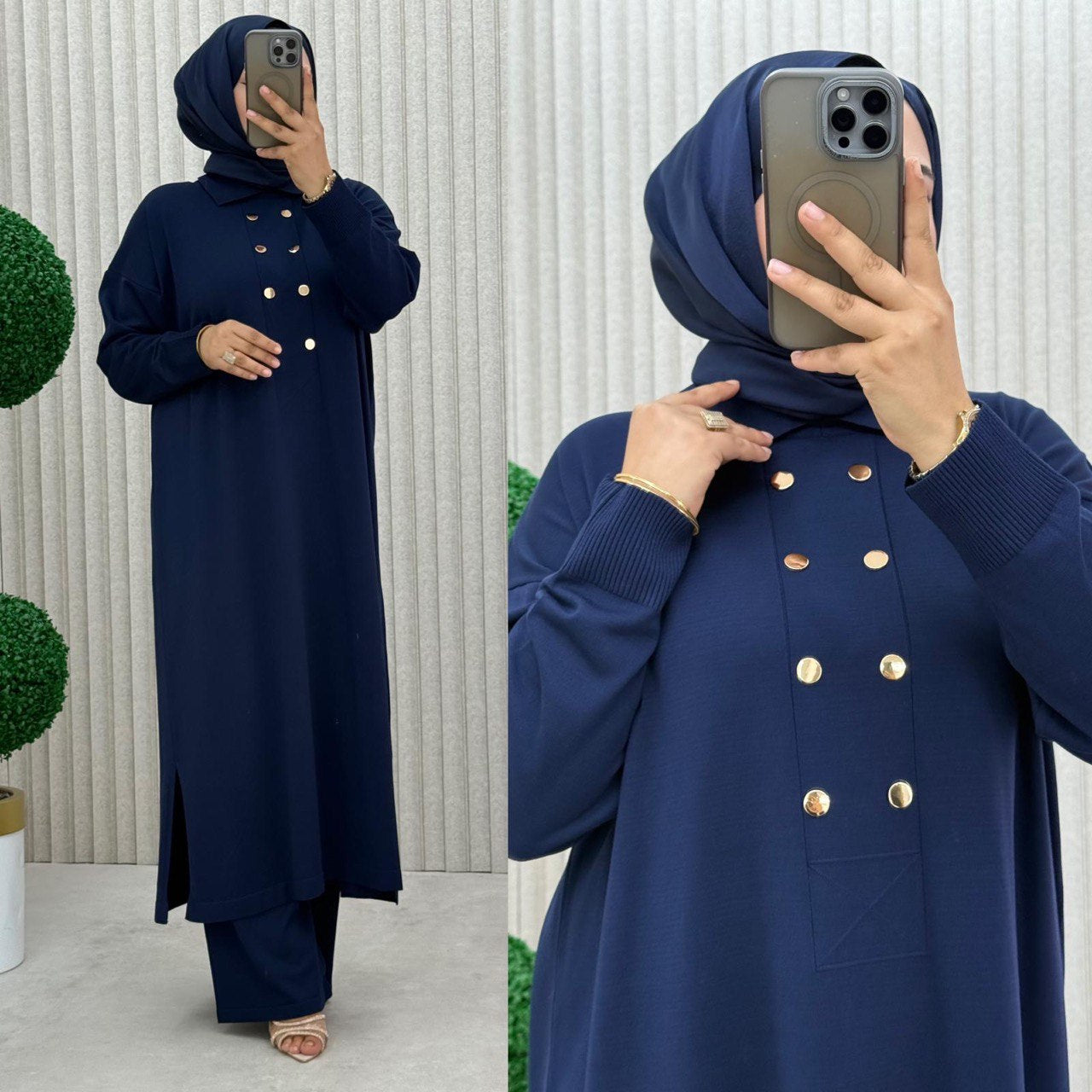طقم دي ام سي شرعي طويل بلوزة بازرار للصدر