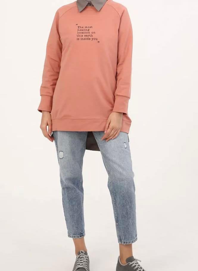 بلوز فوتر طول وسط مع كتابه على الصدر